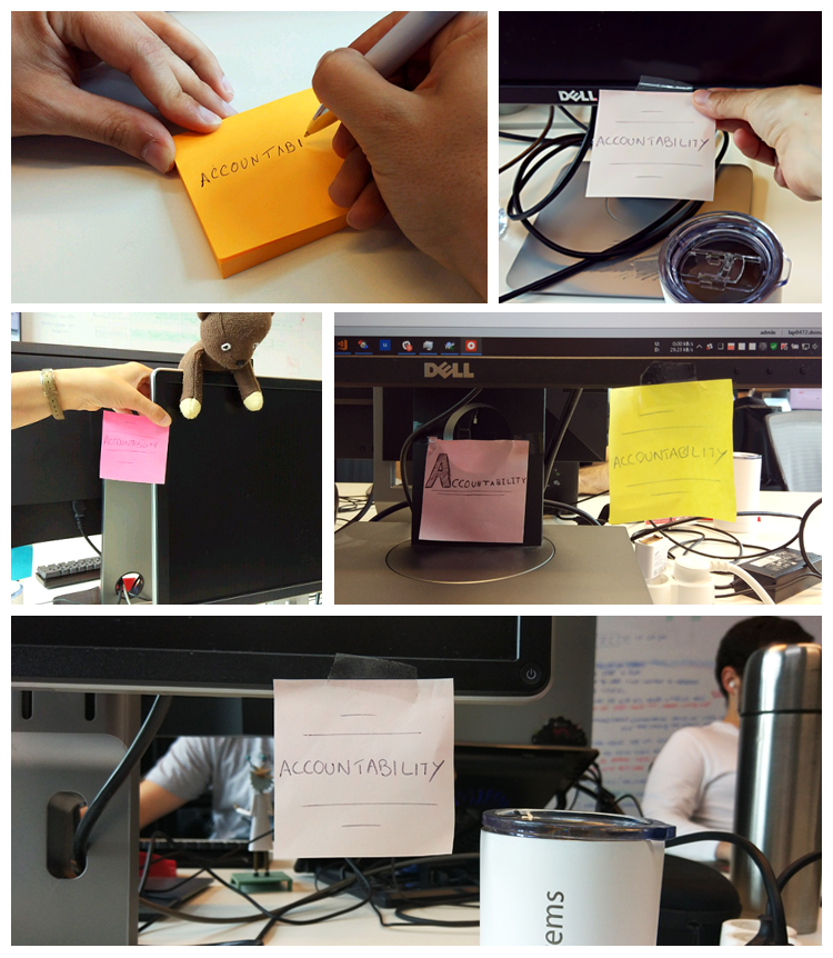 Every organization is different, and it’s important to find what works for you. For example, we came up with small tricks to get everyone to embrace this new mission. A couple of months ago, we added “accountability” post-its to the team’s monitors so everyone reads them every time they look at the screen. This is a little thing that makes a big difference. You can try this in your organization or find something else. Big or small, choose what makes sense and go for it!