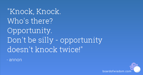 We didn't wait for an opportunity to knock twice. We took our chance. Isn't it time you take yours?