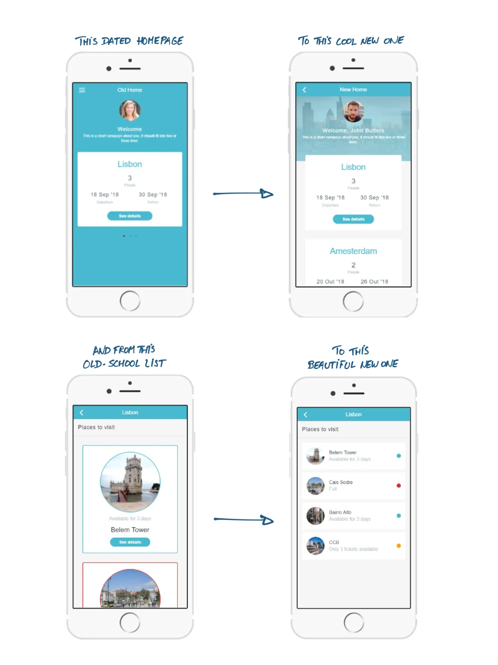 Our example is a travel app with a home screen that we want to change. This is a total visual overhaul, which calls for a completely different screen. To do this screen, you’ll need to create a new role, assign that role to the users who will test the new screen, and add a bit of logic to the login. At a high-level, this is how it looks.