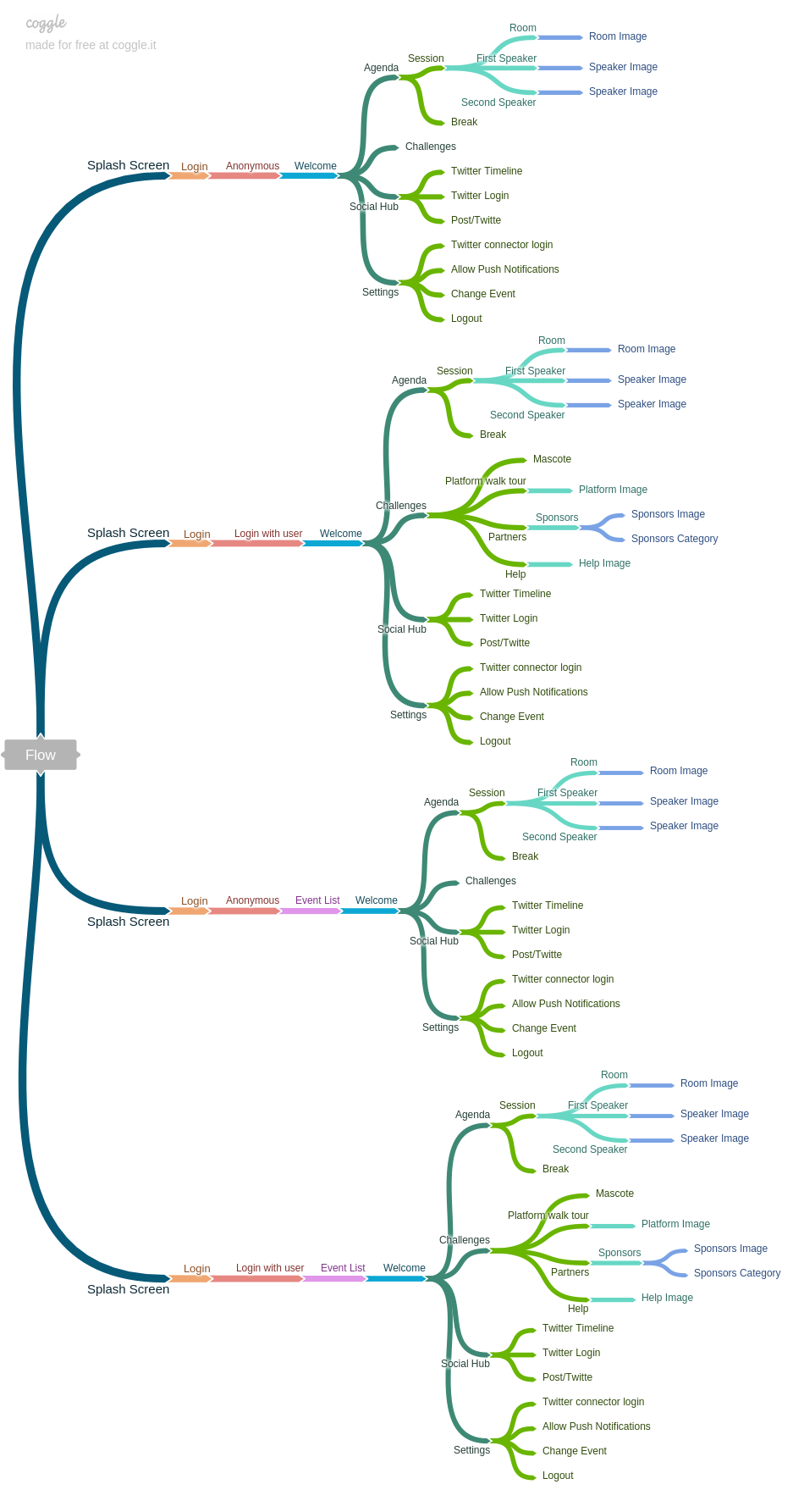 We were then ready to start to replanning the app’s development. The best way to do it is by defining all user flows to get a clear vision of how a user will interact with the app. To do it, we used mind-mapping to design them: