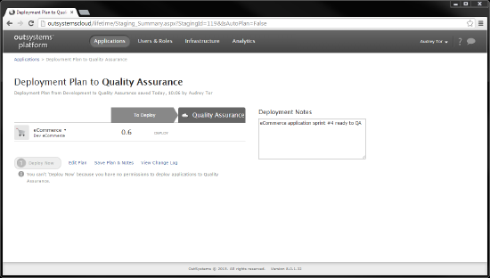 In addition, OutSystems offers APIs to manage deployments and to govern users, such as adding deployment privileges to a developer during a SOX-compliant deployment process.
