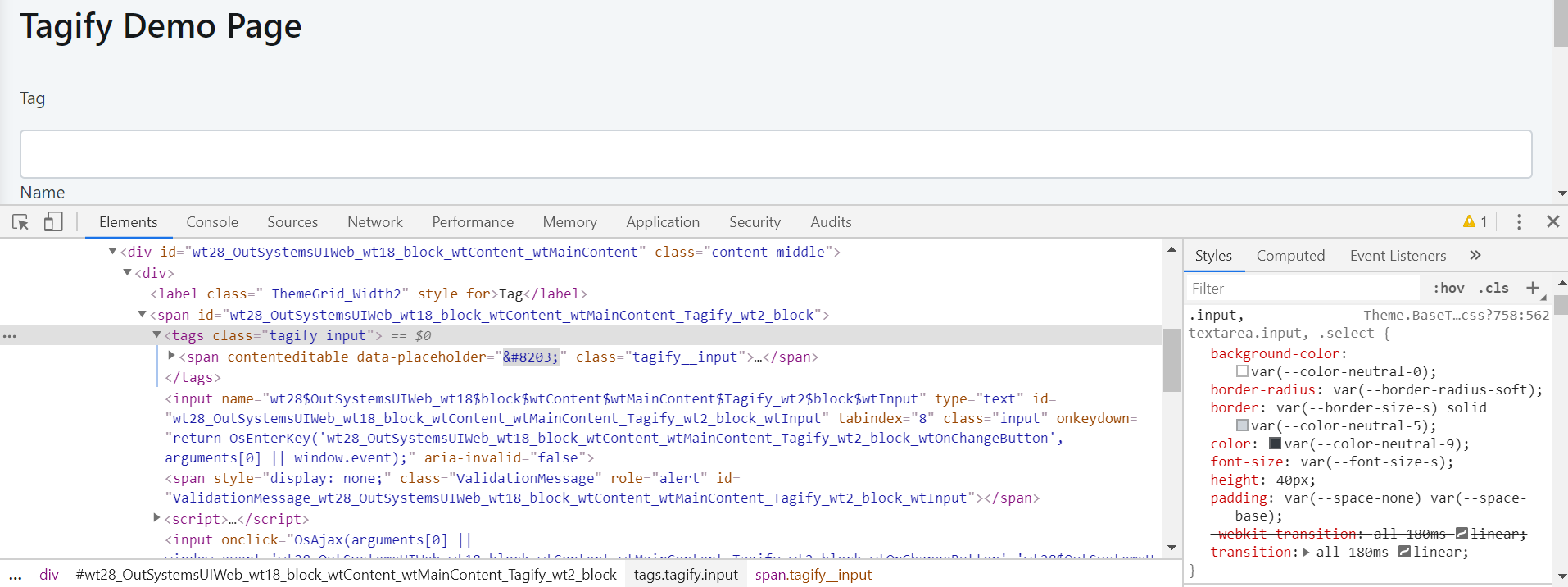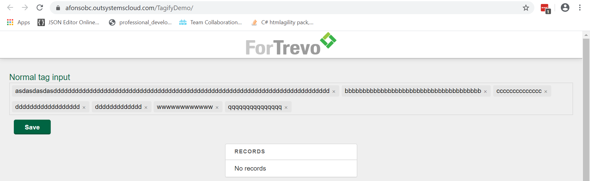 You can try at afonsobc.outsystemscloud.com/TagifyDemo. I suspect there should be some specific issue in your Screen outside of Tagify. Do you think you could share an OML with an example of the problem, for everyone to look over?