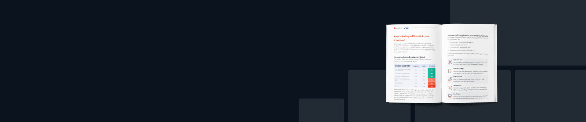 レポートをダウンロードすると、金融サービス企業がいかにデジタル化の優先事項を切り替え、開発担当者の新規採用という課題に取り組みながら、アプリケーションに対する継続的に高い要求に対応しているかをご覧いただけます。アプリケーション開発を高速化し、成果を上げている企業を把握できるだけでなく、スピードと適応力において他社をリードするためのヒントが得られるはずです。